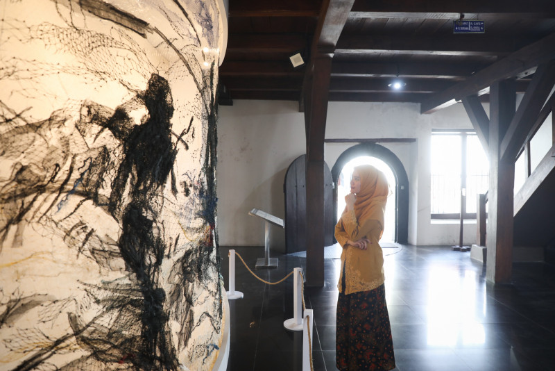 Instalasi seni jaring berjudul Laut Halaman Rumah terpasang di area tengah Museum Bahari Jakarta, Penjaringan, Jakarta Utara. Instalasi karya seniman Iwan Yusuf tersebut menggambarkan kegembiraan anak-anak di tepi pantai serta menciptakan ruang imajinatif antara seni dan dimensi maritim.