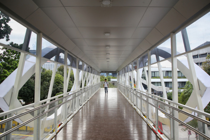 Warga melintas di Jembatan Penyebrangan Orang (JPO) Soepomo, Tebet, Jakarta Selatan, Jumat (12/1). Jembatan dengan panjang 31,15 meter, lebar gelagar 3 meter, tangga 2 meter dan tinggi 5,2 meter ini sudah mulai beroperasi sejak Desember 2023.