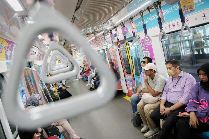 Sejumlah penumpang saat berada di kereta MRT Jakarta, Kamis (11/1). PT MRT Jakarta (Perseroda) mencatat sebanyak 33.496.540 orang menggunakan layanan transportasi publik itu sepanjang tahun 2023. Jumlah tersebut menunjukkan lebih dari 91 ribu orang menggunakan MRT Jakarta setiap hari.