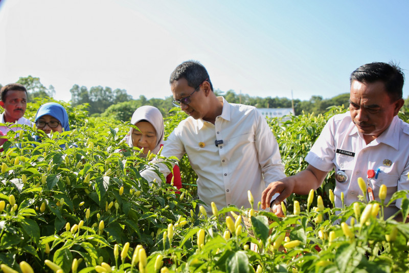 Penjabat (Pj) Gubernur DKI Jakarta, Heru Budi Hartono melakukan panen cabai bersama secara serentak dengan Kelompok Tani Pinggir Bumi (KTPB) di Buperta Cibubur, Cipayung, Jakarta Timur, Rabu (20/12). Panen cabai juga dilakukan secara hybrid bersama Provinsi Jawa Barat, Banten, Jawa Tengah, Daerah Istimewa Yogyakarta, dan Sulawesi Selatan yang merupakan mitra kerja sama Pemprov DKI dalam pengembangan potensi daerah. (Foto: Andri Widiyanto/beritajakarta.id)