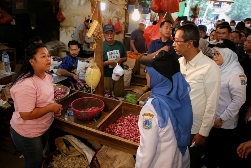 Penjabat (Pj) Gubernur DKI Jakarta, Heru Budi Hartono meninjau ketersediaan dan harga bahan pokok di Pasar Induk Kramat Jati, Jakarta Timur, Rabu (20/12). Peninjauan ini dilakukan masih dalam rangka menstabilkan harga dan ketersediaan barang kebutuhan pokok menjelang Natal dan Tahun Baru (Nataru). (Foto: Andri Widiyanto/beritajakarta.id)