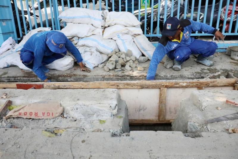Satuan Pelaksana Sumber Daya Air (Satpel SDA) Kecamatan Johar Baru melakukan perbaikan saluran air di Jalan Percetakan Negara, Johar Baru, Jakarta Pusat, Rabu (20/12). Perbaikan saluran sepanjang 35 meter dan lebar 50 sentimeter ini dilakukan karena sebelumnya dinding saluran rusak karena akar pohon yang menjalar hingga menembus dinding saluran. (Foto: Mochamad Tresna Suheryanto/Beritajakarta.id)