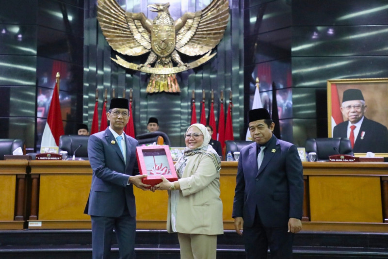 Penjabat (Pj) Gubernur DKI Jakarta, Heru Budi Hartono menghadiri rapat paripurna DPRD Provinsi DKI Jakarta, di ruang rapat paripurna DPRD Provinsi DKI Jakarta, Rabu (6/12). Rapat ini beragendakan penyampaian laporan hasil pembahasan Bapemperda terhadap Raperda tentang Perubahan Bentuk Hukum Perseroan Terbatas Food Station Tjipinang Jaya menjadi Perseroan Terbatas Food Station Tjipinang Jaya (Perseroan Daerah), Raperda tentang Rencana Umum Energi Daerah Provinsi DKI Jakarta, dan Raperda tentang Pajak Daerah dan Retribusi Daerah. (Foto: Mochamad Tresna Suheryanto/berita jakarta.id)