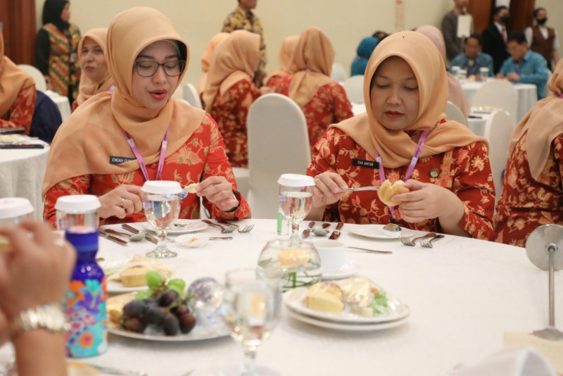 Badan Pengembangan Sumber Daya Manusia (BPSDM) Provinsi DKI Jakarta menggelar kegiatan peningkatan kompetensi bagi anggota Tim Penggerak (TP) PKK dan Dharma Wanita Persatuan (DWP) Provinsi DKI Jakarta di Hotel Millenium Jalan Fachrudin, Kampung Bali, Tanah Abang, Jakarta Pusat, Kamis (30/11). Kegiatan ini digelar selama dua hari 30 November dan 1 Desember 2023 diikuti 66 peserta terdiri dari 36 PKK dan 30 dari DWP DKI Jakarta. Dalam kegiatan ini para peserta diajaekan berbagai materi salah satunya table manner. (Foto: Mochamad Tresna Suheryanto/beritajakarta.id)