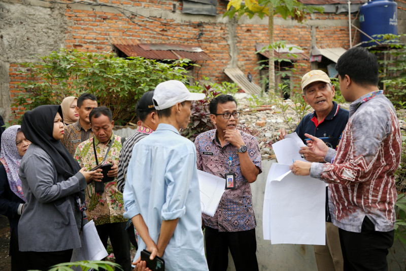 Tim Persiapan Pengadaan Tanah bagi pembangunan jalur, stasiun dan fasilitas proyek kereta cepat Jakarta - Bandung melakukan pendataan awal lokasi rencana pembangunan di wilayah RW 03, 04, 05 dan RW 12 Kelurahan Cipinang Melayu, Kecamatan Duren Sawit, Jakarta Timur, Kamis (30/11). Ketua Kelompok Pengaduan Biro Pemerintahan Setda Provinsi DKI Jakarta, Agus Saputra mengatakan, kegiatan ini merupakan amanat dari Peraturan Menteri Agraria dan Tata Ruang (Permen ATR) tentang pengadaan tanah untuk pembangunan. Sebelum ini pihaknya juga telah menggelar sosialisasi kepada warga terdampak. (Foto: Andri Widiyanto/beritajakarta.id)