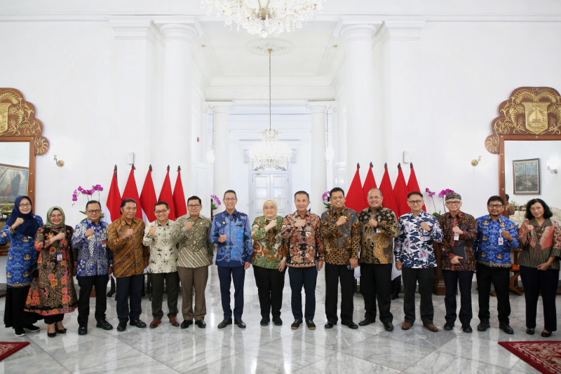 Pemprov DKI Jakarta bersinergi dengan pemerintah daerah lainnya, yakni Provinsi Banten, Provinsi Jawa Barat, Provinsi Jawa Tengah, Kota Bogor, Kota Depok, serta Kota Bekasi melalui High Level Meeting (HLM) Tim Pengendali Inflasi Daerah (TPID) dalam rangka mengendalikan inflasi menjelang akhir tahun di Balai Kota DKI Jakarta, Jalan Medan Merdeka Selatan, Gambir, Jakarta Pusat, Rabu (29/11). Sinergi ini sejalan dengan arahan Menteri Dalam Negeri (Mendagri) Tito Karnavian agar setiap daerah mampu mengendalikan inflasi. (Foto: Andri Widiyanto/beritajakarta.id)