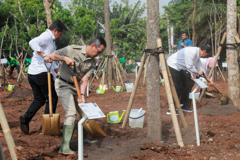 Penjabat (Pj) Gubernur DKI Jakarta, Heru Budi Hartono melakukan penanaman pohon bersama Presiden RI, Joko Widodo di Hutan Kota Kawasan Industri Pulogadung, Jakarta Timur, Rabu (29/11). Penanaman pohon konsisten dilakukan untuk mengantisipasi perubahan iklim, pemanasan global dan polusi udara. (Foto: Andri Widiyanto/beritajakarta.id)