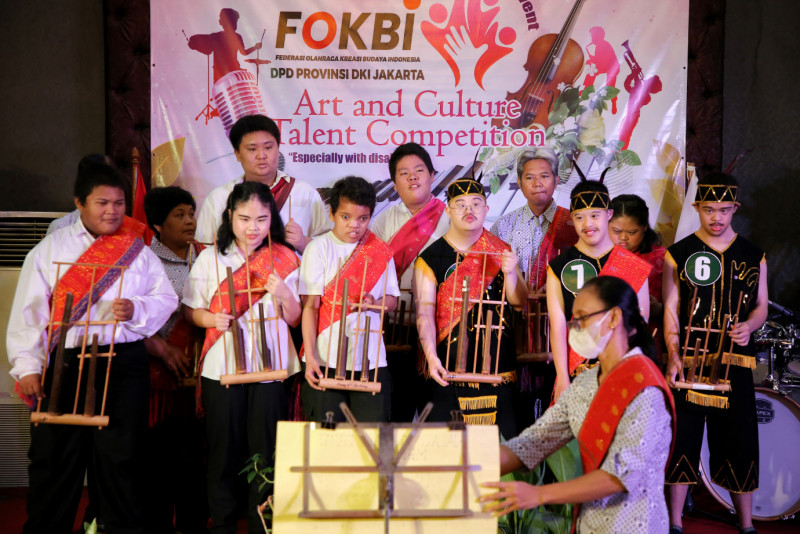 Sebanyak 12 peserta mengikuti kegiatan kompetisi seni dan budaya di sebuah hotel ternama di bilangan Kemang, Jakarta Selatan, Sabtu (25/11). Kegiatan bertajuk \"Art and Culture Talent Competition: Especially with Disabilities\" ini diselenggarakan oleh Federasi Olahraga Kreasi Budaya Indonesia (FOKBI) DPD DKI Jakarta.