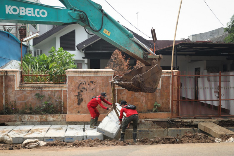 Suku Dinas Sumber Daya Air (Sudin SDA) Jakarta Timur membuat empat saluran air di kawasan perumahan Cipinang Indah Jalan Cipinang Indah I, Kelurahan Cipinang Muara, Jatinegara, Jakarta Timur, Kamis (9/11). Pembuatan saluran air ini diharapkan mengatasi genangan yang sering terjadi di wilayah tersebut.