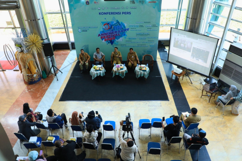 Dinas Kebudayaan Provinsi DKI Jakarta menggelar konferensi pers (konpers) terkait peryaan HUT ke-55 Taman Ismail Marzuki (TIM) di Lobby Teater Besar Taman Ismail Marzuki, Jalan Cikini Raya, Menteng, Jakarta Pusat, Senin (6/11). Narasumber dalam konpers ini Kepala Dinas Kebudayaan provinsi DKI Jakarta, Iwan Heri Wardhana, Kepala UP Pusat Kesenian Jakarta, Arif Rahman, dan Ketua Harian Dewan Kesenian Jakarta, Bambang Prihadi.