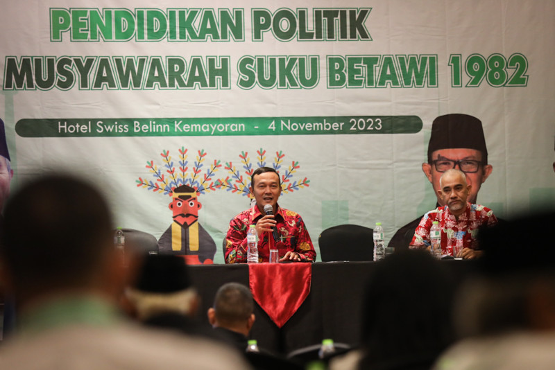 Badan Musyawarah (Bamus) Suku Betawi 1982 menggelar kegiatan Pendidikan Politik di Hotel Swiss-Belinn Kemayoran, Jakarta Pusat, Sabtu (4/11). Sebanyak 200 peserta dari 48 ormas yang berada di bawah naungan Bamus Suku Betawi 1982 mengikuti kegiatan yang digelar selama dua hari pada 4-5 November 2023.