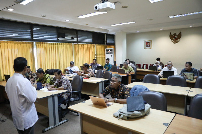 Peserta focus group discussion (FGD) pengukuran produktivitas regional dan sektoral yang digelar oleh Dinas Tenaga Kerja, Transmigrasi dan Energi (Nakertrangi) DKI Jakarta mengikuti uji kompetensi di Kantor Disnakertransgi, Gambir, Jakarta Pusat, Jumat (27/10). Uji kompetensi dilakukan agar produktivitas di Jakarta dapat dinilai dengan orang yang terlatih dan kompeten.