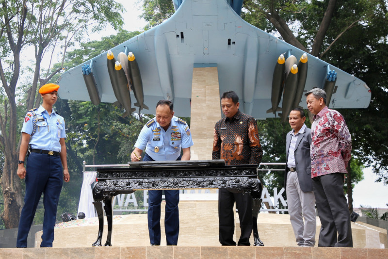 Sekretaris Daerah (Sekda) Provinsi DKI Jakarta, Joko Agus Setyono menghadiri peresmian Monumen Swa Bhuwana Paksa di Taman Seno, Jalan Tebet Barat XII, Tebet Barat, Tebet, Jakarta Selatan, Selasa (24/10). Peresmian ini merupakan salah satu dari berbagai macam kegiatan kerjasama yang telah dilakukan untuk memujudkan sinergitas antara TNI-AU dan Pemerintah Provinsi DKI Jakarta.