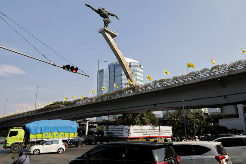 Dinas Kebudayaan Provinsi DKI Jakarta melakukan perawatan atau konservasi Monumen Patung Dirgantara di Jalan Gatot Subroto RT 02/01Kelurahan Menteng Dalam, Tebet, Jakarta Selatan, Selasa (10/10). Perawatan ini merupakan upaya pelestarian atau penyelamatan Objek Cagar Budaya yang memiliki nilai sejarah terhadap perkembangan Jakarta dan peradaban, dilaksanakan Unit Pengelola (UP) Pusat Konservasi Cagar Budaya sejak Sabtu (27/9) lalu dan ditargetkan selesai pada November 2023 mendatang.