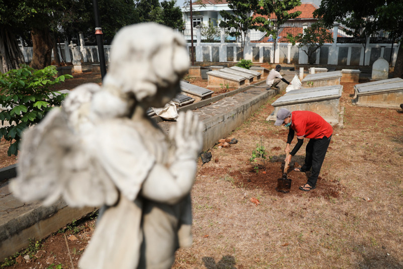 Dinas Ketahanan Pangan, Kelautan dan Pertanian (KPKP) DKI Jakarta melakukan penanaman pohon produktif di Museum Prasasti, Petojo Selatan, Gambir, Jakarta Pusat, Jumat (6/10). Total pohon produktif yang ditanam sebanyak 18 pohon dengan rincian 10 pohon alpukat Cipedak dan delapan pohon anggur.