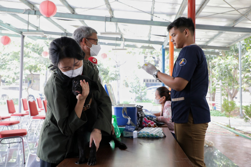 Sebanyak 40 ekor hewan milik warga telah divaksin rabies di RPTRA Pesona Tipar, Kelurahan Semper Barat, Cilincing, Jakarta Utara, Senin (2/10). Vaksinasi untuk hewan penular rabies (HPR) ini diinisiasi oleh Suku Dinas Ketahanan Pangan Kelautan dan Pertanian (Sudin KPKP) Jakarta Utara.