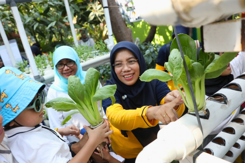 Dharma Wanita Persatuan (DWP) Badan Pengembangan Sumber Daya Manusia (BPSDM) bersinergi dengan Dinas KPKP DKI Jakarta menggelar kegiatan urban farming di Pusat Pelatihan Pertanian dan Perdesaan Swadaya (P4S) Mawar, Kebon Kosong, Kemayoran, Jakarta Pusat, Jumat (29/9). Kegiatan urban farming ini dihadiri Ketua DWP DKI Jakarta, Endang Lestari Joko. Dalam kegiatan ini belasan siswa PAUD dan anggota DWP BPSDM DKI Jakarta tampak antusias mengikuti kegiatan urban farming yang meliputi menanam benih cabai, memberi makan ikan, panen sayur dan membuat minum olahan hasil panen.