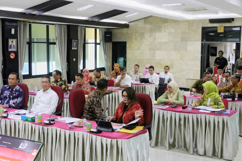 Penjabat (Pj) Gubernur DKI Jakarta, Heru Budi Hartono menyampaikan capaian kinerja dalam evaluasi kinerja atas pelaksanaan tugas Pj Kepala Daerah Triwulan IV di Kantor Inspektorat Jenderal Kementerian Dalam Negeri (Itjen Kemendagri) RI, Jalan Medan Merdeka Timur, Gambir, Jakarta Pusat, Jumat (29/9). Dalam pertemuan tersebut, Pj Gubernur tidak hanya memaparkan capaian kinerja tiga bulan terakhir atau selama Triwulan IV, tetapi juga menyampaikan capaian kinerja Pj Kepala Daerah Provinsi DKI Jakarta selama satu tahun.