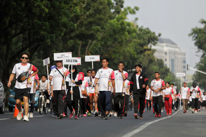 Sebanyak 2.500 peserta mengikuti Jalan Sehat yang diselenggarakan KONI Provinsi DKI Jakarta, Minggu, (10/9). Kegiatan ini dalam rangka Hari Olahraga Nasional (Haornas) yang diperingati setiap tanggal 9 September, sekaligus menyosialisasikan penyelenggaraan Pekan Olahraga (PON) XXI di Aceh dan Sumatera.