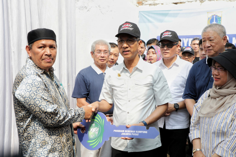 Penjabat (Pj) Gubernur DKI Jakarta, Heru Budi Hartono menyerahkan tujuh kunci rumah Program Bebenah Kampung yang diinisiasi oleh Yayasan Buddha Tzu Chi di Jalan Matraman Dalam 3, Kelurahan Pegangsaan, Kecamatan Menteng, Jakarta Pusat, Sabtu (10/9). Apresiasi dan terima kasih disampaikan Pj Gubernur kepada Yayasan Buddha Tzu Chi serta warga yang turut mendukung proses pembangunan dan perbaikan, sehingga renovasi rumah tersebut dapat selesai dengan baik.