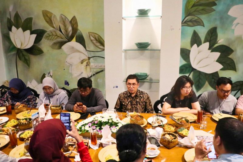 PT Transportasi Jakarta (Transjakarta) menggelar diskusi bersama awak media di Kawisari Caffe Jalan Kebon Sirih, Menteng, Jakarta Pusat, Jumat (18/8). Diskusi ini membahas strategi PT Transjakarta untuk menekan polusi di Jakarta dengan menambah armada bus berbasis listrik, hadir dalam diskusi ini Kepala Departemen Humas dan CSR PT Transjakarta, Wibowo, Direktur Utama PT Transjakarta, Welfizon Yuza dan sejumlah awak media.