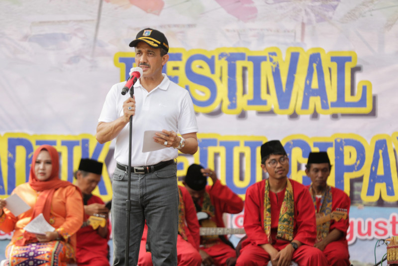 Wali Kota Jakarta Timur, Muhammad Anwar membuka Festival Waduk Setu Cipayung, Kecamatan Cipayung, Jakarta Timur, Sabtu (19/8). Kegiatan yang berlangsung dua hari hingga Minggu (20/8) ini sekaligus untuk memeriahkan HUT Ke-78 Kemerdekaan Republik Indonesia dengan berbagai macam lomba seperti, lomba dayung, memancing, mewarnai dan tarik tambang.