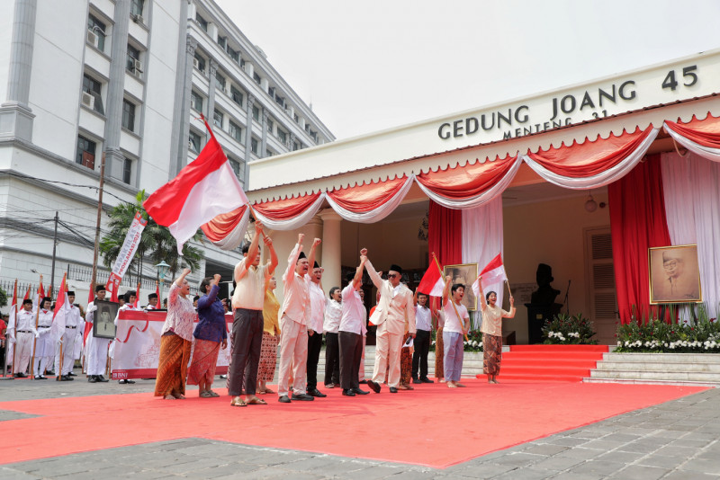 Dalam rangka menyambut HUT ke-78 Republik Indonesia, Unit Pengelola Museum Kesejarahan Jakarta Dinas Kebudayaan DKI Jakarta menggelar Napak Tilas Proklamasi 2023 di Museum Joang 45, Menteng, Jakarta Pusat, Rabu (16/8). Kegiatan ini diikuti 928 peserta terdiri dari komunitas, para pelajar, veteran, mantan pejuang, maupun masyarakat umum.