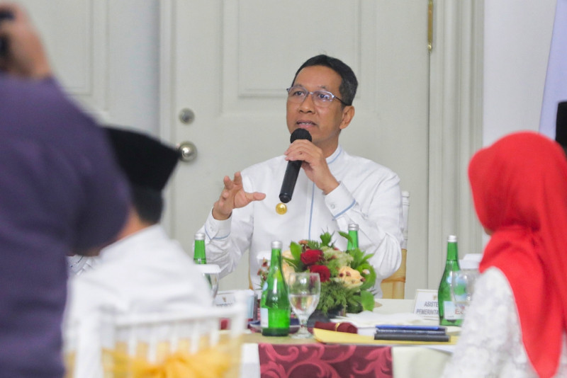 Penjabat (Pj) Gubernur Provinsi DKI Jakarta, Heru Budi Hartono kembali bersilaturahmi dengan para wartawan di Balai Kota DKI Jakarta, Gambir, Jakarta Pusat, Jumat (28/7). Kegiatan yang juga dihadiri Sekda DKI Jakarta, para Asisten, Inspektur dan pimpinan SKPD juga dibuka ruang berdialog untuk menjawab isu strategis dan meluruskan pemberitaan yang beredar di masyarakat.