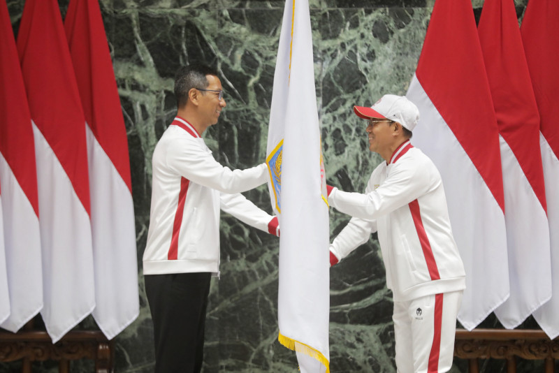 Penjabat (Pj) Gubernur DKI Jakarta, Heru Budi Hartoni melepas kontingen DKI Jakarta dalam Pekan Paralimpik Pelajar Nasional (Peparpenas) ke-X tahun 2023 di Balai Kota DKI Jakarta, Jumat (28/7). Papernas ke-X yang akan digelar mulai 29 Juli hingga 5 Agustus 2023 di Palembang, Sumatera Selatan tersebut akan diikuti oleh 22 atlet kontingen DKI Jakarta.