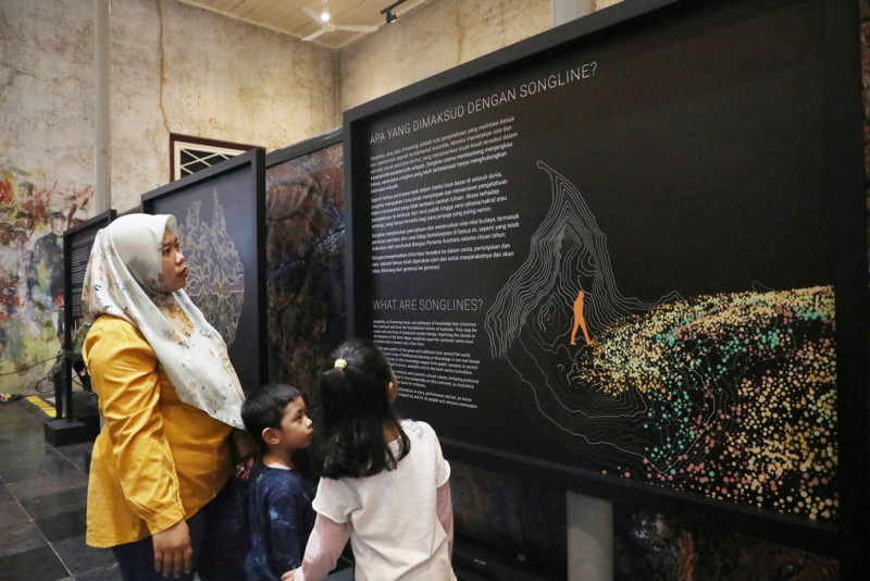 Kedutaan Besar (Kedubes) Australia bersama Museum Kesejarahan Jakarta menggelar Pameran Seni Walking Through a Songline, di Museum Kesejarahan Jakarta, Kawasan Kota Tua, Taman Sari, Jakarta Barat. Pameran berlangsung mulai 4-23 Juli 2023.