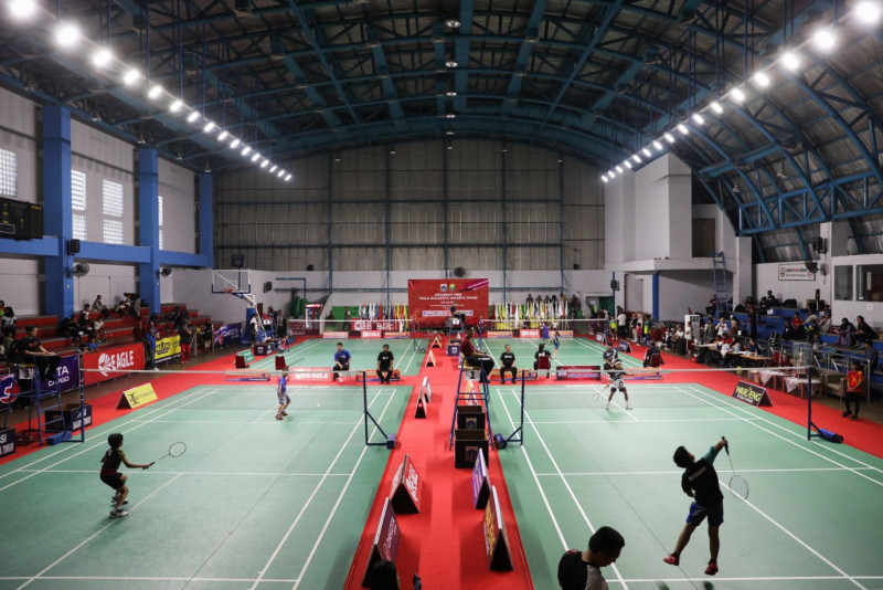Sejumlah atlet usia dini mengikuti Kejuaraan Kota Persatuan Bulutangkis Seluruh Indonesia (Kejurkot PBSI) Piala Wali Kota Jakarta Timur di Gelanggang Remaja Pulogadung, Jakarta Timur, Rabu (5/7). Sebanyak 825 atlet dari 77 klub dengan kategori pra dini hingga dewasa yang ada di Jakarta Timur bersaing mendapatkan tempat untuk mewakili Jakarta Timur di kejuaraan tingkat provinsi.