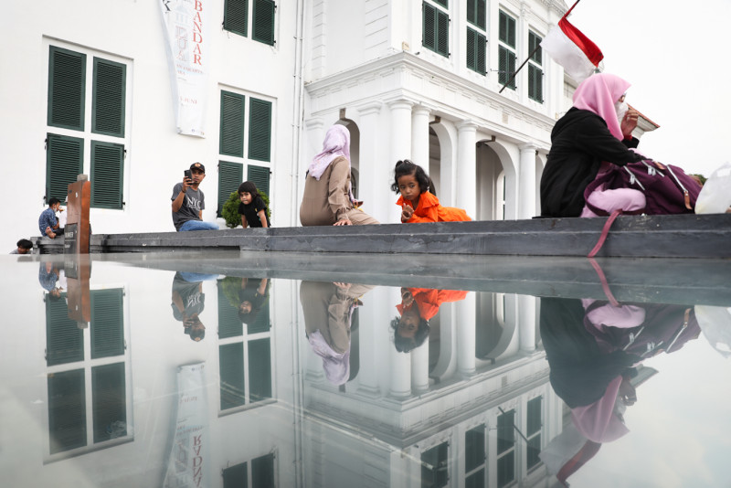 Sejumlah wisatawan memanfaatkan libur cuti bersama Hari Raya Iduladha 1444 Hijriah di kawasan Kota Tua, Taman Sari, Jakarta Barat, Jumat (30/6). Kawasan Kota Tua yang memiliki luas 1,3 kilometer persegi ini tidak hanya diminati oleh wisatawan lokal tetapi juga wisatawan mancanegara.