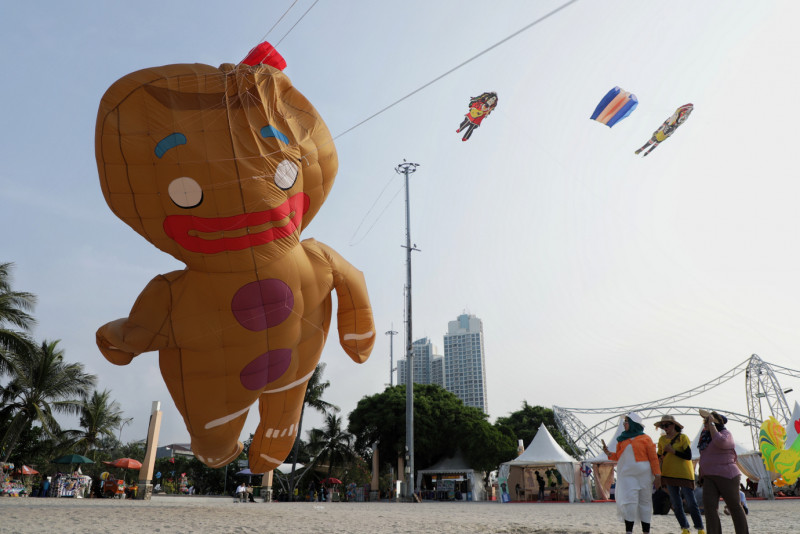 Ancol Taman Impian bersama menggelar Festival Layang-Layang di area Pantai Lagoon, Pademangan, Jakarta Utara, Jumat (23/6). Kegiatan ini merupakan rangkaian HUT DKI Jakarta ke-496, festival ini berlangsung mulai tanggal 22 Juni 2023 sampai 9 Juli 2023.