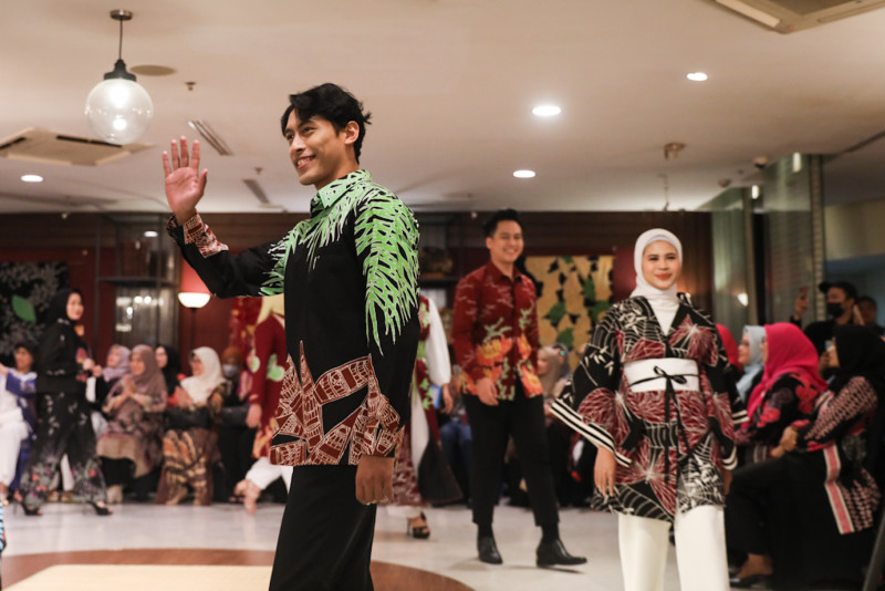 Sejumlah perajin Batik Marunda menggelar peragaan busana dan pameran karya di Alun-Alun Indonesia, Mall Grand Indonesia, Tanah Abang, Jakarta Pusat, Jumat (23/6). Peragaan busana yang didukung oleh Dekranasda DKI Jakarta tersebut menampilkan karya perajin yang telah mengikuti program inkubasi di Prodi Fashion Design Universitas Bina Nusantara Jakarta sebagai salah satu upaya pengembangan bersama.