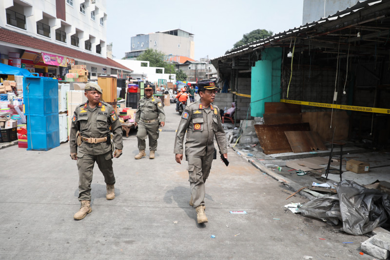 Petugas gabungan menertibkan lahan milik Pemprov DKI Jakarta yang berada di Jalan Bekasi Timur IV RW 02 Rawa Bunga, Jatinegara, Jakarta Timur, Rabu (21/6). Penertiban 13 bangunan semi permanen tersebut dilakukan dalam rangka pengamanan aset, pengembalian ruang terbuka hijau, normalisasi sungai, saluran, dan jalan inspeksi.