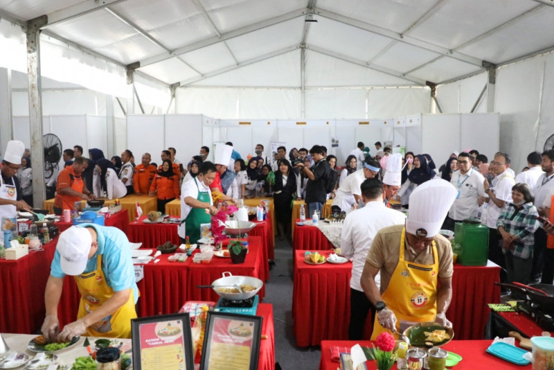 Pemerintah Provinsi DKI Jakarta melalui Dinas Perindustrian, Perdagangan, Koperasi, Usaha Kecil dan Menengah (PPKUKM) menggelar Lomba Masak Nasi Goreng di Halaman Kantor Balai Kota, Rabu (21/6). Lomba digelar dalam rangka memeriahkan HUT ke-496 Kota Jakarta diikuti oleh Penjabat Gubernur (Pj) Provinsi DKI Jakarta, Heru Budi Hartono dan para pimpinan OPD di lingkungan Pemprov DKI Jakarta yang seluruh pesertanya adalah laki-laki.