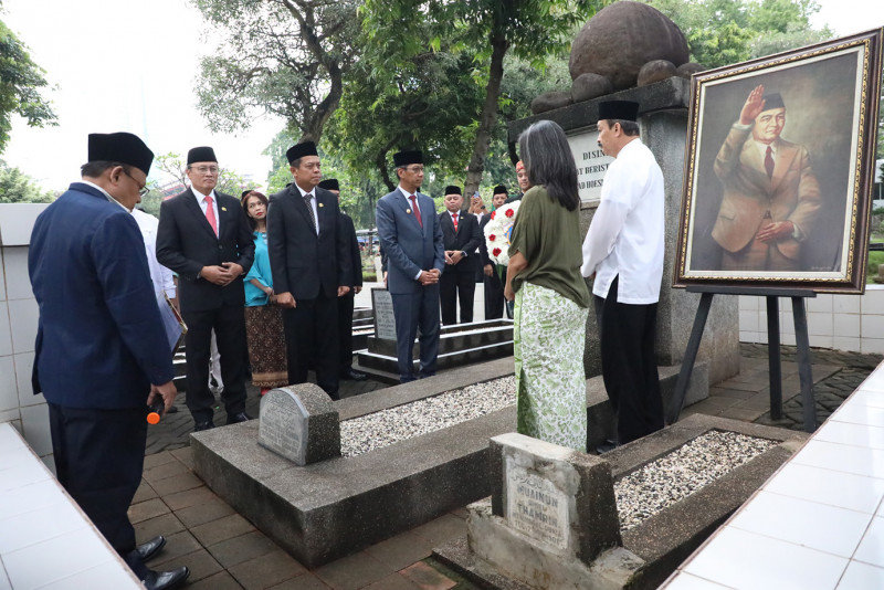 Penjabat (Pj) Gubernur Provinsi DKI Jakarta, Heru Hudi Hartono beserta para pejabat di lingkungan Pemprov DKI Jakarta melakukan ziarah ke Taman Makam Pahlawan (TMP) Kalibata, Jakarta Selatan dan TPU Karet Bivak, Tanah Abang, Jakarta Pusat, Sabtu (17/6). Heru menjelaskan, ziarah ke TMP Kalibata dan TPU Karet Bivak selain mendoakan arwah para pahlawan dan tokoh bangsa juga dalam rangka memperingati HUT ke-496 Kota Jakarta.