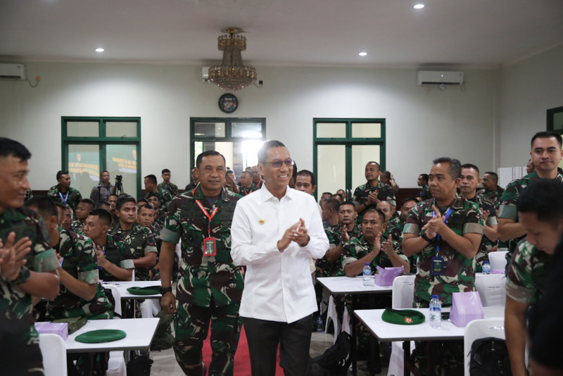 Penjabat (Pj) Gubernur Provinsi DKI Jakarta, Heru Budi Hartono menghadiri Apel Dansat Tersebar (AKS) TNI AD 2023 di Aula NKRI Rindam Jaya, Condet, Jakarta Timur, Senin (15/5). Pada kesempatan itu, Heru memberikan pembekalan kepada Komandan Satuan Jajaran Kodam Jaya terkait profesionalisme prajurit dalam rangka mendukung keberhasilan tugas pokok TNI .