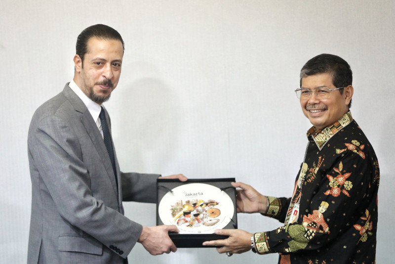 Deputi Gubernur Bidang Budaya dan Pariwisata DKI Jakarta, Marullah Matali menerima kunjungan Duta Besar Libya untuk Indonesia, Zakarya Muhammad El Maghrabi di Ruang Rapat Deputi, Balai Kota, DKI Jakarta, Kamis (11/5). Dalam kunjungannya Dubes Libya untuk Indonesia menyampaikan sejumlah harapan diantaranya, nama kota Tripoli ada di Jakarta. Sebab, nama Jakarta, Bandung dan Presiden RI pertama, Soekarno dijadikan nama jalan protokol di Libya. Selain itu, Dubes Libya untuk Indonesia juga akan mengundang Pemprov DKI Jakarta untuk kerja sama dengan pemerintah kota Tripoli dalam beberapa bidang seperti pendidikan, penataan kota dll.