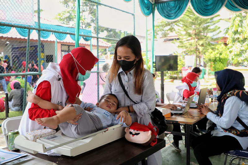 Pemerintah Kota Administrasi Jakarta Timur menggelar perayaan Pekan Imunisasi Dunia tingkat kota di RPTRA Mustika, Jalan Kerja Bakti, RT.02/10, Kelurahan Kramat Jati, Kecamatan Kramat Jati, Jakarta Timur, Selasa (9/5). Perayaan yang diikuti lebih dari 200 balita tersebut berisi rangkaian kegiatan seperti talkshow, imunisasi, pemeriksaan kesehatan dan tumbuh kembang balita.