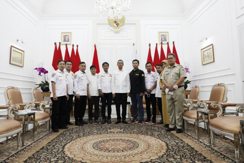 Penjabat Gubernur DKI Jakarta, Heru Budi Hartono menerima pengurus Karang Taruna Provinsi DKI Jakarta di Ruang Tamu Gubernur, Balai Kota DKI Jakarta, Selasa (9/5). Dalam pertemuan ini pengurus Karang Taruna DKI Jakarta mengundang Pj Gubernur dalam kegiatan silaturahmi akbar dan dialog kebangsaan yang digelar pada 13 Mei mendatang.