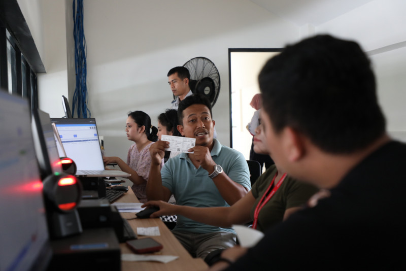 Sejumlah pengelola PO Bus mengikuti pelatihan sistem organisasi dan penjualan tiket secara online di Terminal Kampung Rambutan, Jakarta Timur, Selasa (9/5). Pelatihan yang diadakan Unit Pengelola Terminal Dinas Perhubungan DKI Jakarta tersebut diikuti oleh 122 pengelola PO Bus yang beroperasi di Terminal Kampung Rambutan.