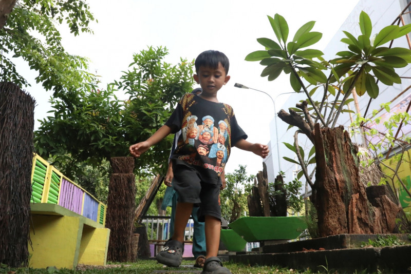 Sejumlah warga memanfaatkan taman kawasan unggulan 2 Kelurarahan Malaka Sari di Jalan Teratai Putih Raya, RT 10/04, Malaka Sari, Duren Sawit, Jakarta Timur, Jumat (5/5). Taman yang memiliki luas enam meter x 40 meter persegi ini dilengkapi dengan gazebo dan berbagai tanaman hias bonsai mulai dari bonsai beringin Korea, bonsai beringin lokal dan bonsai beringin legend.