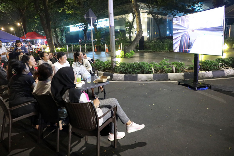 Penyelenggara Jakarta E-Prix 2023 bersama para mitranya menggelar acara Nonton Bareng (Nobar) Formula E Monaco E-Prix di Weekland SCBD, Jakarta Selatan, Sabtu (6/5). Nobar yang dimulai pukul 15.00 hingga 22.00 WIB ini dihelat dalam rangka menyemarakkan suasana menjelang pergelaran Jakarta E-Prix 2023.