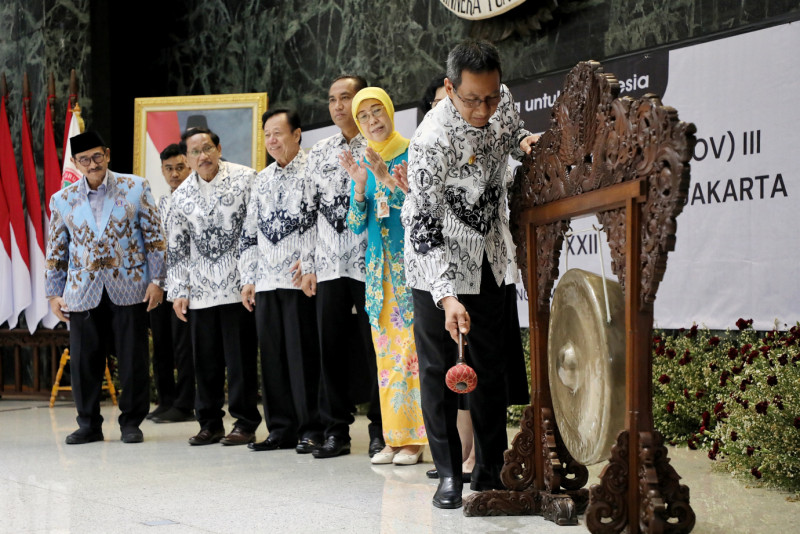 Penjabat (Pj) Gubernur DKI Jakarta, Heru Budi Hartono memberikan sambutan pada Konferensi Kerja Provinsi (Konkerprov) ke III Persatuan Guru Republik Indonesia (PGRI) DKI Jakarta Masa Bakti XXII Tahun 2023 di Balai Agung, Balai Kota, DKI Jakarta, Jumat (5/5). Dalam sambutannya, Pj Gubernur memberikan pesan kepada ratusan guru yang hadir agar terus memperhatikan perkembangan anak didik.