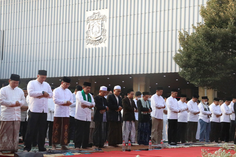 Penjabat (Pj) Gubernur DKI Jakarta, Heru Budi Hartono melaksanakan Salat #Idulfitri 1444 Hijriah bersama pejabat dan Aparatur Sipil Negara (ASN) serta warga di halaman Balai Kota DKI Jakarta, Sabtu (22/4). Momen ini mengingatkan Heru pada masa lalunya, ketika masih menjadi ASN di lingkungan Pemprov DKI Jakarta. Heru mengungkapkan, Salat Idulfitri 1444 H digelar di Balai Kota DKI Jakarta berdasarkan keinginan dari ASN sendiri, karena selain bisa membawa anggota keluarga dan mempermudah silaturahmi, lokasi tersebut juga mudah diakses.