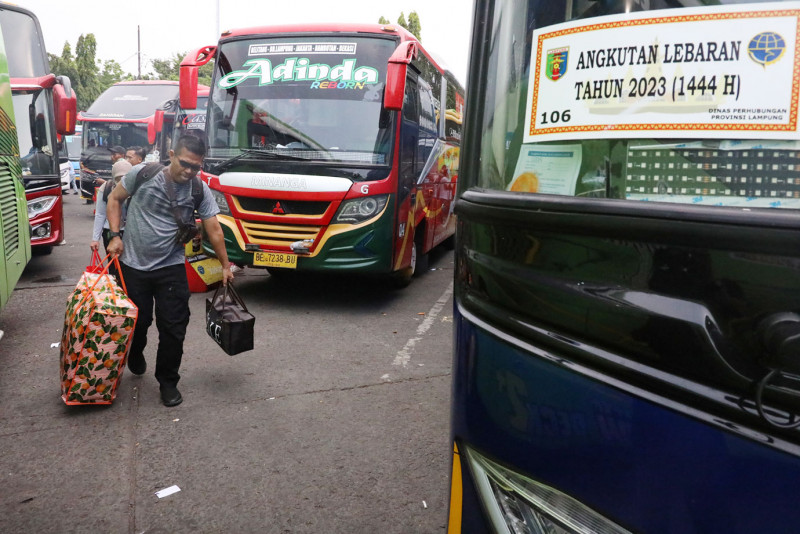 Sebanyak 4.000 pemudik diberangkatkan dari Terminal Bus Antar Kota Antar Provinsi (AKAP) Kalideres, Jakarta Barat, Kamis (20/4). Angka tersebut mengalami penurunan dibandingkan dua hari sebelumnya yang rata-rata memberangkatkan sebanyak 5.000 penumpang per harinya.