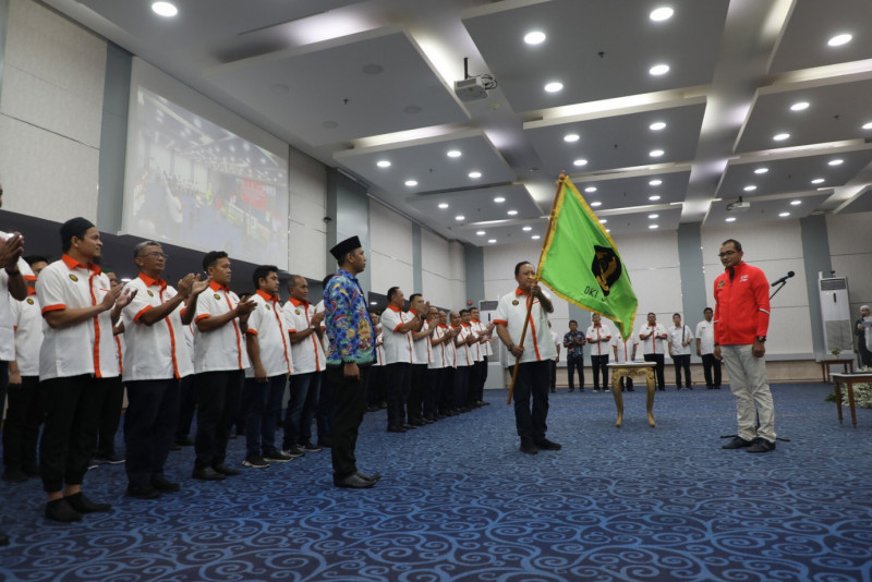 Ketua Umum Pengurus Pusat Persatuan Tenis Seluruh Indonesia (PP PELTI), Eddy Omar Syarif Hiariej melantik 40 anggota Pengurus Daerah (Pengda) PELTI Provinsi DKI Jakarta Masa Bakti 2023-2027 di Balai Kota, Jumat (14/4). Dalam pelantikan ini Hari Nugroho didapuk sebagai Ketua Umum Pengda PELTI Provinsi DKI Jakarta.