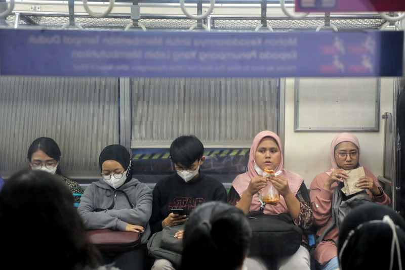 Suasana saat jam berbuka puasa di Stasiun Sudirman, Jakarta Pusat. PT KAI Commuter menerapkan aturan khusus kepada penumpang (Kereta Rel Listrik) KRL atau commuter line selama bulan #Ramadan, yakni penumpang dibolehkan makan dan minum dalam gerbong KRL saat waktu berbuka puasa.