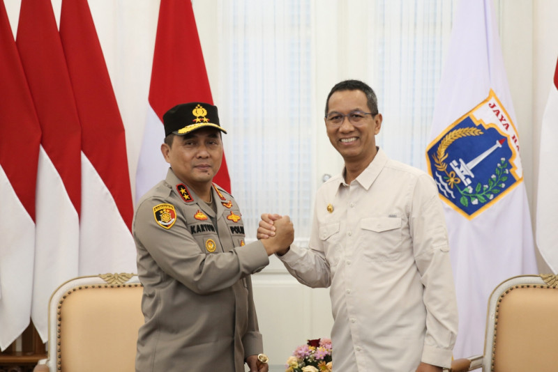 Kapolda Metro Jaya, Irjen Pol Karyoto menemui Penjabat (Pj) Gubernur DKI Jakarta, Heru Budi Hartono di Balai Kota DKI Jakarta, Gambir, Jakarta Pusat, Rabu (5/4). Pertemuan keduanya untuk memperkuat sinergi Polda Metro Jaya dengan Pemprov DKI Jakarta dalam mengatasi berbagai permasalahan di Jakarta serta persiapan menjelang Hari Raya Idulfitri 1444 Hijriah.